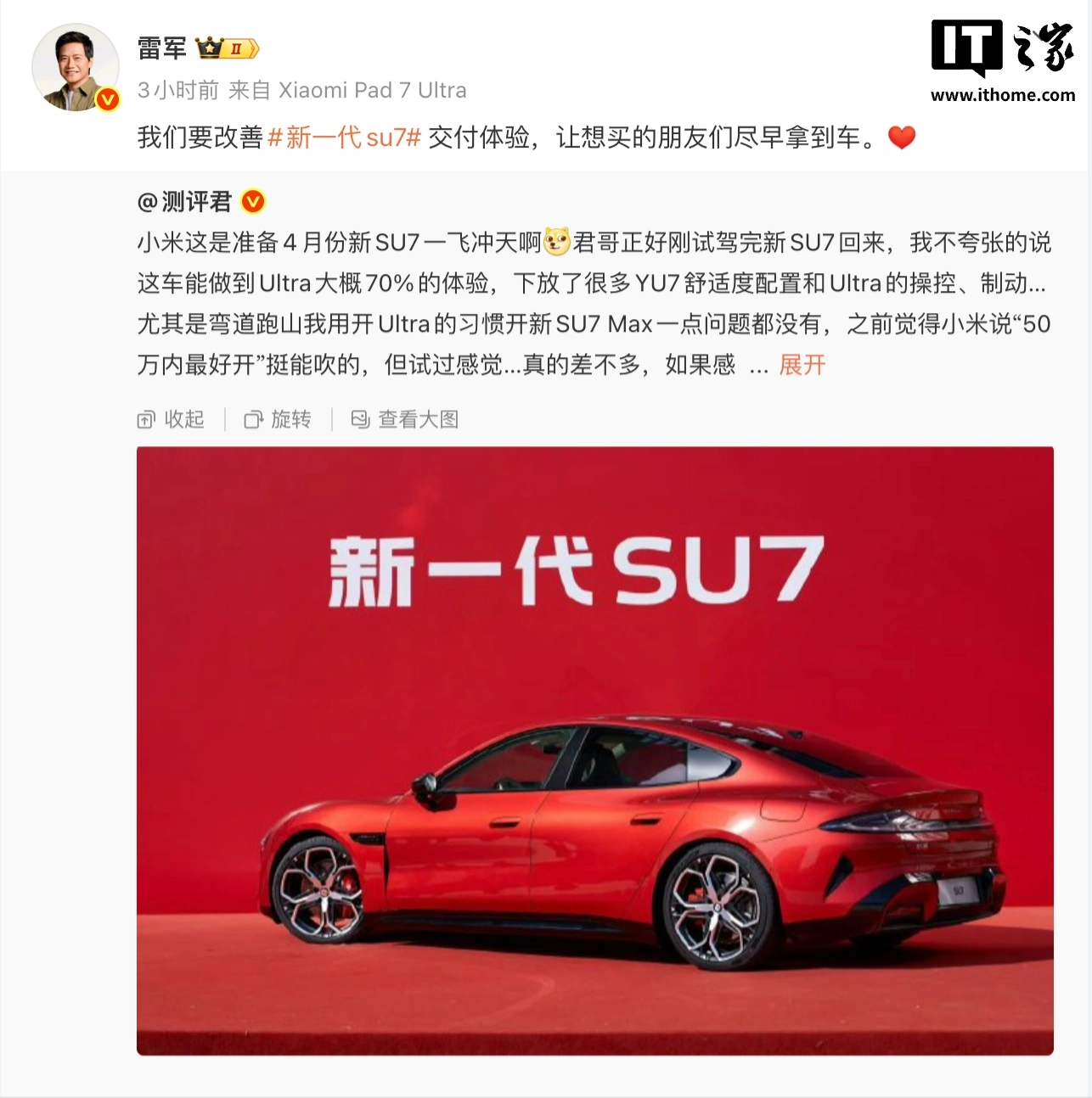 雷軍:小米要改善新一代 SU7 交付體驗,讓車主盡早拿到車