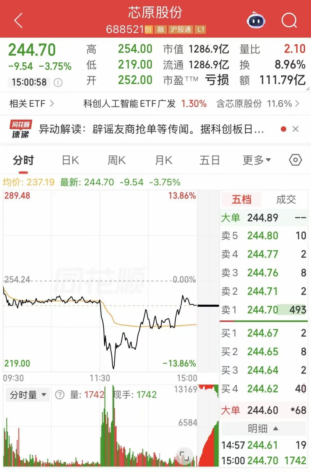 午后,有“中國(guó)半導(dǎo)體(881121)IP第一股”之稱的芯原股份(688521)(688521)出現(xiàn)急速跳水,盤中跌幅持續(xù)擴(kuò)大,截至收盤,跌幅收窄,跌近4%,成交額超111億元,總市值超1200億元。