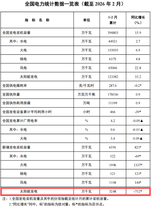 2026年1—2月全國(guó)電力統(tǒng)計(jì)數(shù)據(jù)情況